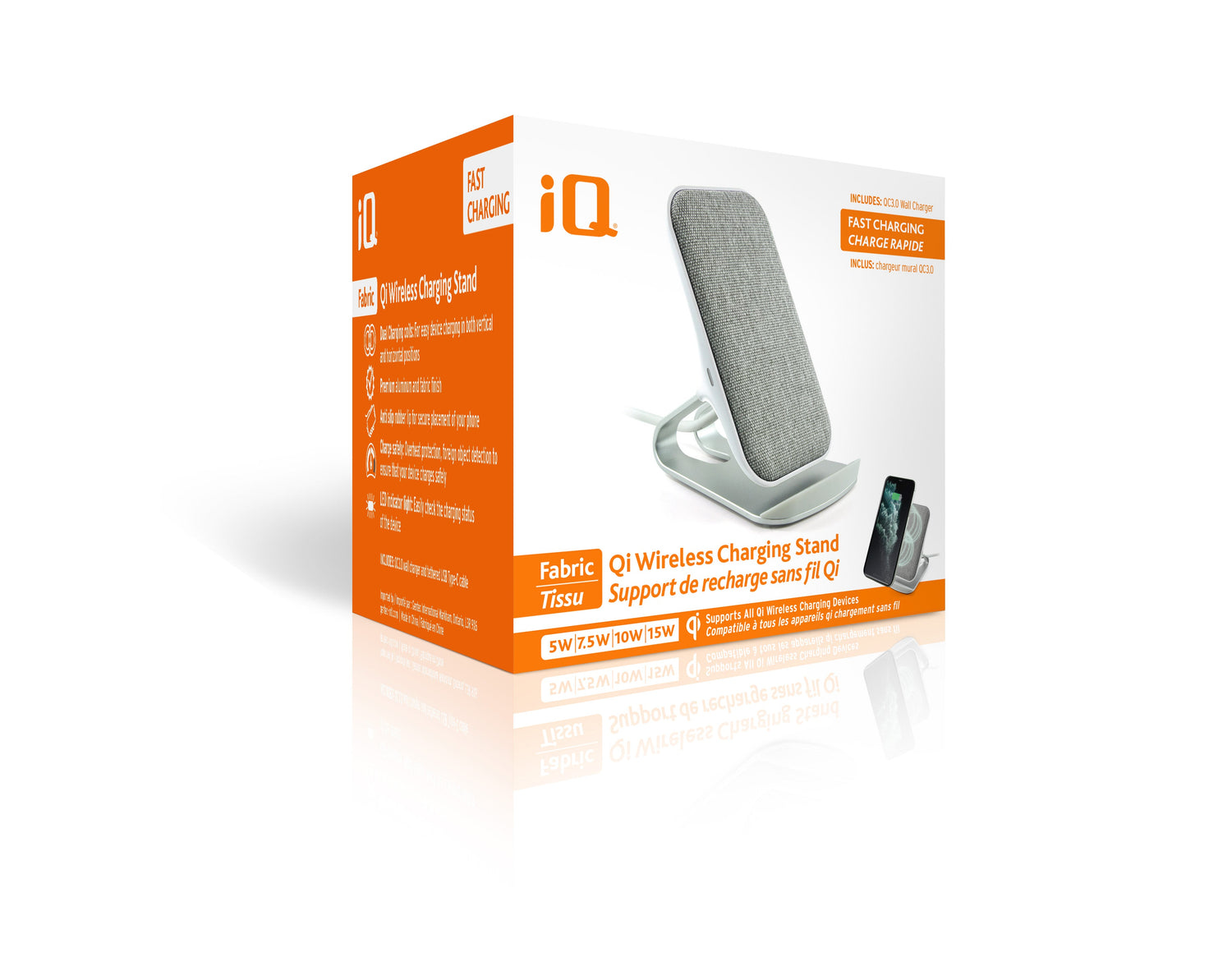 Experience the convenience of wireless charging with the iQ Wireless Charging Stand. Designed with a sleek fabric finish, this charging stand not only looks great but also provides efficient and reliable charging for your devices.
