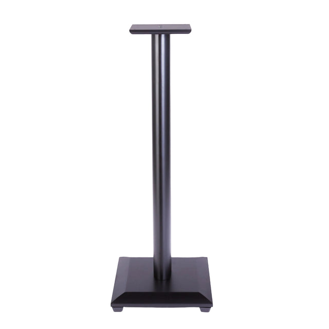 The SANUS Natural Series NF36 is a 36-inch stand for small bookshelf speakers up to 25 lbs. Its black-lacquered MDF base includes adjustable carpet spikes and screw-in polyester feet for stability. A solid hardwood pillar supports a 6 by 6-inch top plate with adjustable-height brass studs and neoprene pads to provide superior isolation and resonance damping for speakers. A patented wire management channel conceals and protects cables. This product is sold as a pair.